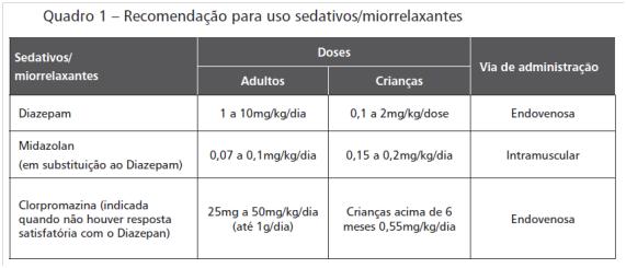 Para a sedação do paciente recomenda-se a administração de benzodiazepínicos e miorrelaxantes.